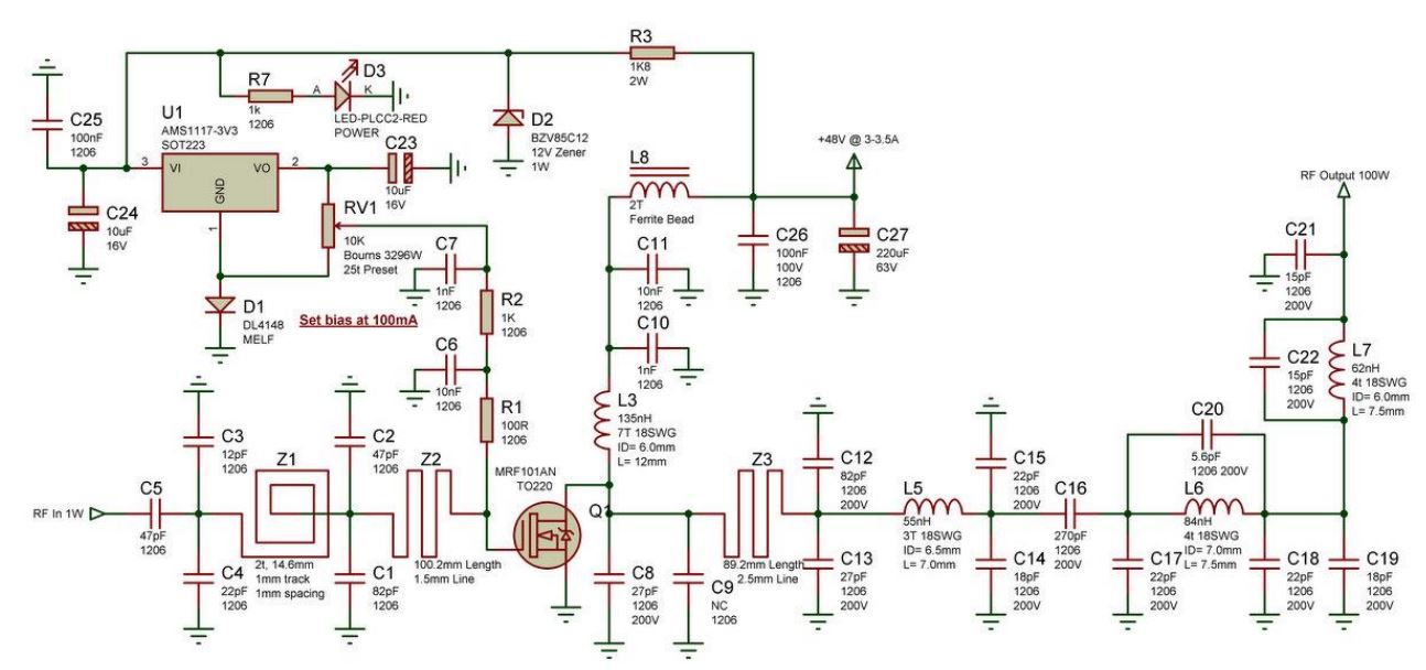 DIY KIT 100 WATT amplifier 87-108MHZ MRF101A